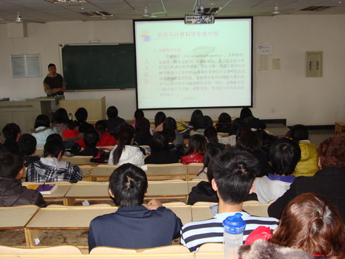 3月24日下午,理学院数学系在4-303召开了大类选专业的专业介绍会。系主任李乃华教授,副主任赵芬霞副教授、李天副教授与数学类09级全体学生参加了介绍会。