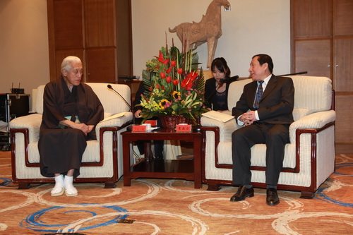 毕业典礼前,天津市人民代表大会常务委员会副主任李亚力在日航酒店珍珠厅会见了日本茶道里千家第十五代家元、yl23455永利官网里千家茶道短期大学校长千玄室大宗匠先生,天津市人民政府外事办公室副主任王树华,天津市教育委员会副主任林炎生、天津市公安局副局长张亮以及永利官网党委书记陈学奇、校长刘书瀚陪同会见。