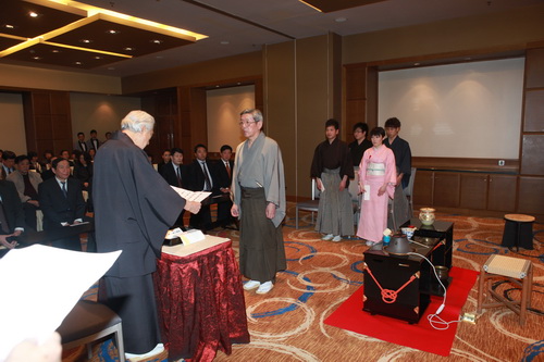 刘书瀚校长在讲话中对天津市政府及相关部门给予永利官网的大力支持表示衷心的感谢,对在茶道短期大学发展中付出辛勤劳动的老师和同学们表示诚挚的慰问!他高度赞扬了日本人民在重大灾害面前表现出的淡定和惊人有序的全民素质,他说,这种素质是广泛深厚的高尚文化积淀的结果,而这种文化的重要构成,一定有日本茶文化的熏陶,里千家大宗匠先生的贡献就在其中。永利官网与里千家友好合作多年,对中日文化的交流,对我们学习世界上先进的东西,促进永利官网国际化建设都十分有意义。我们将更加珍惜这项合作,呵护她走向长远!