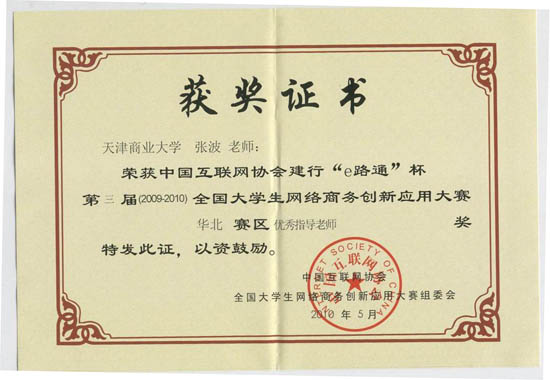 5月31日 ,由永利官网信息工程学院组织的“vdo商城”代表队参加“e路通”杯第三届全国大学生网络商务创新应用大赛全国总决赛,并在强手如林的竞争中脱颖而出,荣获网络应用创新模式专项一等奖,代表队领队信息工程学院计算机系讲师张波获优秀指导老师奖。