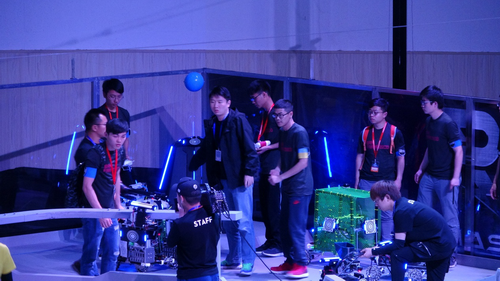 参赛选手现场调试机器人
