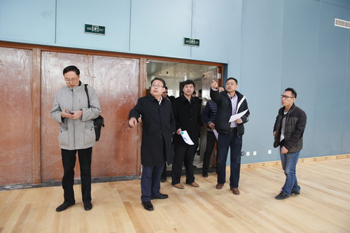 会前,竞委会主任、校长葛宝臻,竞委会副主任、副校长刘革生陪同董军一行实地察看了永利官网跆拳道场馆的建设情况。
