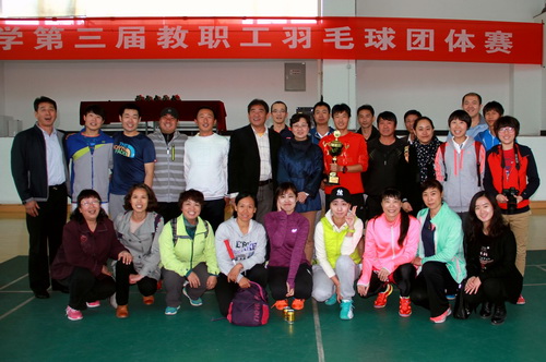 近日,由校工会主办、校教职工羽毛球协会承办的yl23455永利官网第三届教职工羽毛球团体赛落下帷幕。校党委书记史习红到比赛现场为获奖选手颁奖。