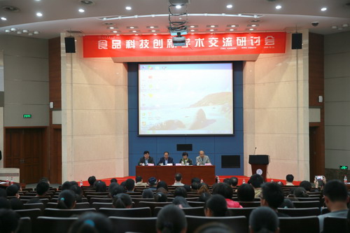 10 月 24 日,由生物技术与食品科学学院承办,以 “ 食品科技创新 ” 为主题的天津市食品学会,食品科技创新学术交流研讨会在图书馆国际报告厅举行。副校长邱立成出席并致词,生物技术与食品科学学院院长张坤生主持,天津市食品学会理事单位、相关食品企业的研发主管、食品安全主管及科技人员、部分大专院校、科研院所的专家、教授及研究生 300 余人参加了报告会。