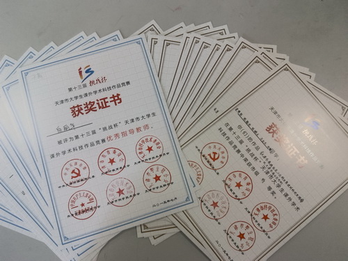 近日,由市委教育工委、市教委、团市委、市科委、市科协主办的第十三届天津市大学生课外学术科技作品竞赛落下帷幕。永利官网共 19 件作品获奖,其中,市级特等奖 3 项,一等奖 2 项,二等奖 6 项,三等奖 8 项。白丽华等 9 位老师获得市级优秀指导老师称号,校团委首次赢得“优胜杯”, 同时荣获优秀组织单位称号。