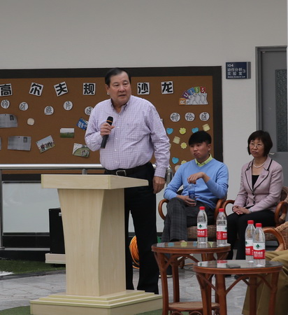 校长刘书瀚在致辞中指出,高尔夫经营管理系呈现出良好的发展势头,是学校“特色兴校”的重要教学成果。五年来,高尔夫经营管理系组建了“双师资”教学团队,形成了“双课堂”教学模式,取得了丰硕的成果。2013 年,该系总结完成《高尔夫经营管理人才对接社会需求的研究与实践》的相关成果,获得四年一度的天津市教学成果奖。在专业教师指导下,由毕业班学生策划并组织的“天商杯校友省亲高尔夫邀请赛”已成功举办三届,得到社会各界的广泛好评。在2013 年高尔夫国家级裁判考试中,该专业四名学生获得国家级高尔夫裁判资格,填补了天津地区没有高尔夫国家 A 级裁判员的空白。这些成果的取得是与天津市高协以及各高尔夫球会的鼎力支持分不开的。学校以天津市高尔夫产业的健康发展为己任,时刻都将高尔夫经营管理系视为天津市高协和各高尔夫球会的培训与科研基地,力求为天津市高尔夫产业的发展做出更大的贡献。