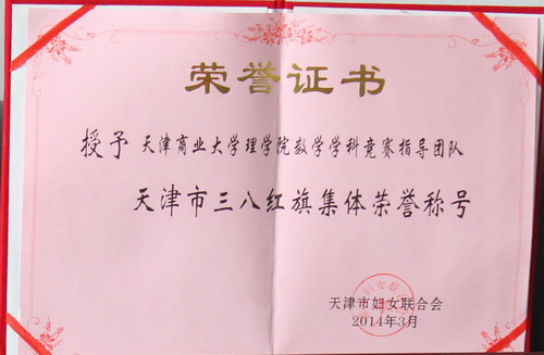 日前,在市妇联组织的 2013 年度天津市三八红旗集体评选中,永利官网理学院数学学科竞赛指导团队获“天津市三八红旗集体”荣誉称号。