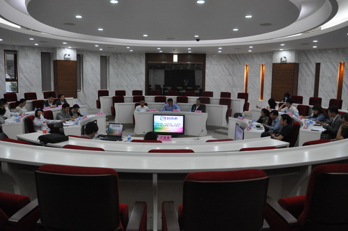 时胜强部长向评委们介绍了“创青春”大赛的流程、作品类别,并解释了打分规则与标准。评委之间进行了相互交流,进一步熟悉评审流程,为初审做好准备。
