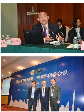 12 月 3-5 日,由中山大学主办、中山大学旅游学院承办的“旅游学术创新与一级学科创建系列会议”在广州白云国际会议中心举行。国内旅游业界的专家学者、企业家及相关媒体代表与会。商学院副院长王庆生作为特邀嘉宾出席会议,并以“我国旅游学科建设的回顾与前瞻”为题在《旅游学术创新与一级学科创建研讨会》上发言,结合国内外旅游学科发展最新进展以及永利官网旅游管理专业发展经历,提出了相关建议。同时,王庆生作为评论人,与华侨大学旅游与高尔夫学院院长黄远水教授一起主持了 12 月 4 日晚上举行的《旅游学术创新与一级学科创建研讨会》论坛,并对与会专家的发言进行点评。