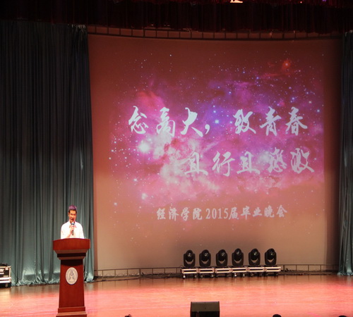 晚会内容丰富,精彩纷呈。毕业班班级通过演唱、舞蹈、话剧、朗诵等形式表达着对母校的感恩之情、对老师们的感激之情、对同窗的不舍之情。 glee 清唱团献给经济学院的一曲《 FOR ECONOMIC 》将晚会推向高潮,同学们上台为敬爱的老师们鲜花,表示感激和祝福。