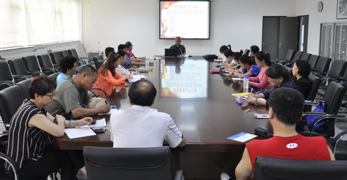 6 月 19 日 上午, 后勤党委书记杨洪涛以“践行三严三实,争做合格党员,努力办师生满意的后勤”为题,组织 后勤全体党员、入党积极分子代表以及外聘员工党员代表进行专题学习。