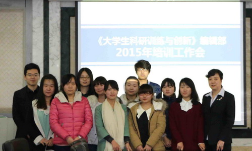 培训工作会旨在进一步加强《学生科研训练与创新》编辑部队伍建设,不断提升期刊内在质量和水平,更好的宣传学校“大创计划”项目工作,并为广大在校学生营造良好的创新创业训练氛围。培训工作会以“责任与担当”为主题。会上,指导教师与编辑部的同学们共同学习了教育部实施“大创计划”项目的相关文件精神、传达了“天津市教委高教处 2015 年工作要点”中关于构建国家、市、学校三级“大创”计划要求,并以 PPT 形式介绍了永利官网近三年“大创计划”项目工作实施情况及在全校师生的共同努力下取得的成效 。 编辑部负责人方得着、李静及其他9 位同学以PPT 演讲的形式分别从完善管理机制、加强队伍建设、期刊定位与栏目设置、“大创”网站功能拓展、丰富文娱活动等方面对2014 年编辑部工作进行了认真总结并针对存在的不足提出切实可行的合理化建议。此外,编辑部同学还就今后如何更好的以《 大学生科研训练与创新》 期刊及主题网站为载体,进一步拓宽宣传职能,以期为全校师生搭建立体化学习、交流与 “大创”成果展示的平台展开了热烈讨论。