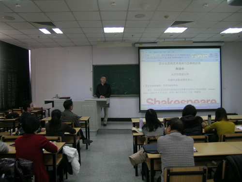 12 月 17 日 下午,北京外国语大学博士生导师、中国外语教育研究中心陈国华教授应邀为外国语学院全体教师及研究生做了题为“莎士比亚的艺术成就与莎剧的汉译”的学术讲座。讲座由外国语学院王永祥副院长主持。