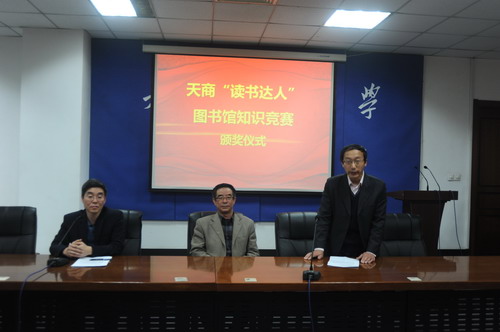 颁奖典礼上,“读书达人”教师代表徐世强老师、学生代表马燕发言畅谈了自己的读书心得体会,与在座师生分享读书好经验、好做法;并且表示图书馆开展“ 资源与服务”宣传 月系列活动 获得了全校师生的积极响应和参与,对 推进永利官网大学生 阅读推广活动、倡导和营造天商良好读书风气发挥了积极引领作用,收到了良好效果,希望 在我们大家的带动和共同努力下,今后能够有越来越多的读者参与其中,使更多的 天商学子受益, 促进 他们的成才、成长。