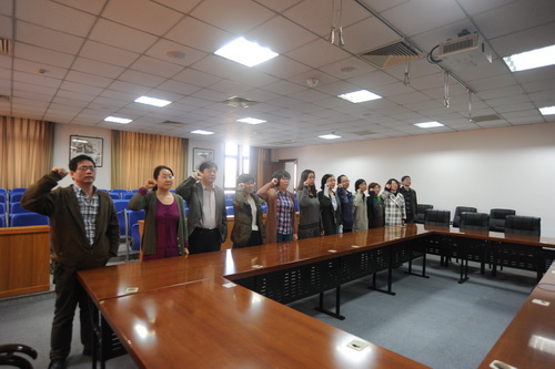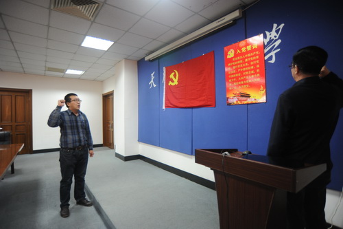 10 月14日下午,图书馆直属党支部按照《中国共产党发展党员工作细则》要求,举行了预备党员于沛同志入党宣誓活动。馆直属党支部书记陈文生领誓,于沛同志及图书馆全体党员一同宣誓,重温入党誓词,牢记党的宗旨。会上,陈文生书记还带领大家学习了新的《中国共产党发展党员工作细则》,严把入口、提高质量,成熟一个发展一个,为党的肌体输入新鲜血液。他要求党员们要在日常工作中要高标准、严要求,切实发挥党员模范带头作用,为图书馆工作水平上台阶做出新的贡献。