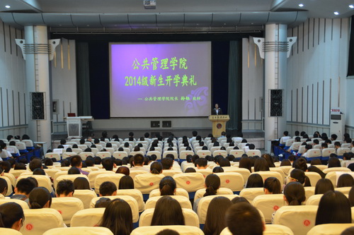 9月17日下午,公共管理学院2014级新生开学典礼暨专业教育大会在学术交流中心召开。院长孙钰,副院长李增田、关兴丽,各系主任及党支部书记出席典礼,辅导员老师、教学秘书、各新生班班主任以及2014级全体新生参加典礼。