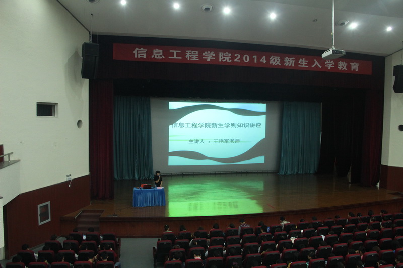 9 月 23 日 下午,信息工程学院在科学会堂举办“ 2014 级新生入学教育第五讲——《yl23455永利官网学生手册》解读。全体 2014 级新生参加。