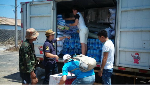 7 月18 日,强台风“威马逊”重创海南,灾情牵动着每一个海南校友的心。面对灾害,天商海南校友会发扬“有难大家帮,共同伸出手”的传统美德,立即行动起来,于 7 月 23 日筹集了第一批物资,派出支援队伍,在专业救助人士“海飘羚羊”和翁田镇热心退伍兵小陈的带领下分别赴文昌罗豆农场上僚村、龙溪村,文昌翁田镇热作农场、桃李村、大塘村进行救助和慰问。同时,在天商海南校友中进行了募捐活动,广大海南本地及外地校友踊跃响应,短短三天之内收到捐款2.9 万余元和价值 1.1 万余元的物资,并募集了车辆亲赴灾区发放物资。