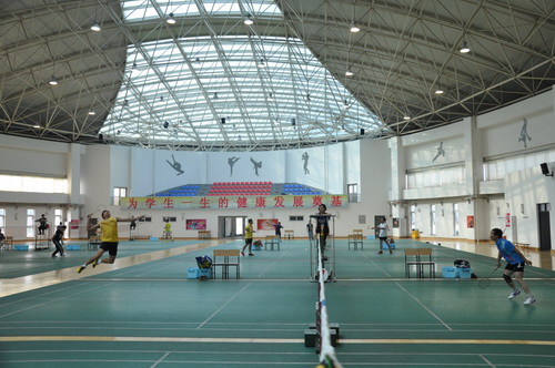 8 月 29 日至 9 月 1 日,校风雨操场羽毛球馆承办了天津市第十三届运动会成年组的羽毛球比赛。此次比赛涉及羽毛球全部五个项目,全市各行各业240 多名选手参加了比赛。