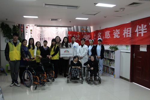 11 月 19 日 上午,yl23455永利官网紫色蒲公英公益服务团队再次来到天津市武清区人民医院,此行的目的是为太阳语罕见病心理关怀中心及瓷娃娃病患家庭捐赠瓷娃娃专用轮椅。通过团队和指导老师安杨的积极努力,共为太阳语罕见病心理关怀中心及瓷娃娃病患家庭捐赠六台崭新的轮椅,且现场组装两台轮椅捐赠给急需轮椅的两名瓷娃娃家庭,并接受了天津电台的采访。