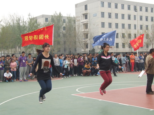 4 月2 日,第七届学生绳、毽比赛在校篮球场举行,来自各学院的学生近500 人参赛。学生参与比赛兴趣高,现场助威声不断。比赛增强了学生锻炼身体的积极性,提高了学生的集体荣誉感。最终,机械学院、公共管理学院、信息工程学院获得团体总分前三名。