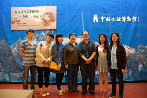 4 月 2 7 日下午,经济学院 2013 级金融学专业部分研究生、金融 1105 班(财富管理方向)部分本科生参与了在永利官网实践教学基地——中国金融博物馆举办的“泉海探宝系列活动之二:中国古钱币杂谈”讲座,活动由中国金融博物馆与天津钱币学会联合举办,人民网天津协办。本活动由白丽华馆长主持,主讲嘉宾是在天津金皇艺术品鉴定中心担任古钱币鉴定工作的李胜魁先生。