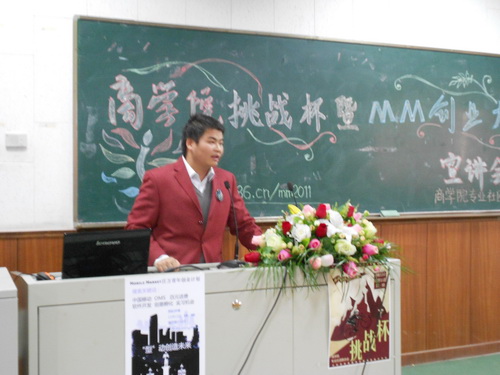 为深入推动在学生中开展“挑战杯”和 Mobile Market 创业大赛,11月11日,商学院在三教110 举办了商学院“挑战杯”暨 Mobile Market 创业大赛宣讲会。商学院副院长王庆、党委副书记翟云锋、校团委老师王樱洁出席,商学院研究生、本科生共计 200 余名学生参加此次宣讲会。