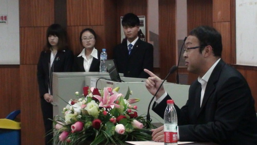 会议伊始,商学院团委副书记张莹为与会学生做了动员讲话,鼓励同学积极投入到“挑战杯”和 Mobile Market 创业大赛。商学院原学生会主席、自组“天之骄子”文化传媒公司的丁琳同学结合自身创业经历,对本次挑战杯创业计划竞赛具体操作流程和注意事项做了讲解;在第十二届“挑战杯”全国大学生课外学术科技作品竞赛中获得全国三等奖的刘家瑞、纪彤两位同学结合自身参赛经历,讲述了参赛心得,详细讲解了 Mobile Market 创业大赛的具体参赛方式及参赛技巧。随后,王庆副院长结合指导挑战杯创业计划大赛以及相关学生科技活动的经验,针对到场学生提出的相关问题进行答疑解惑。王院长精彩睿智的解答,鞭辟入里的讲述,赢得与会学生阵阵掌声。