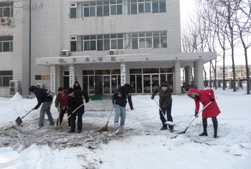 永利官网清扫积雪的活动正在积极全面的开展,各学院各部门也纷纷组织加入到扫雪的队伍中来,校园里四处都活跃着积极扫雪、热情劳动的身影,为师生行路安全提供保障。