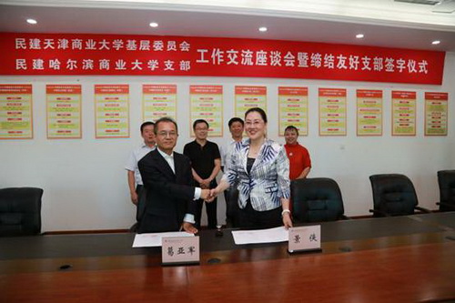 日前,民建yl23455永利官网基层委员会和民建哈尔滨商业大学支部工作交流座谈会暨缔结友好支部签字仪式在哈尔滨商业大学行政楼六楼民主党派会议室举行。黑龙江省政协副秘书长、民建黑龙江省专职副主委张岭、哈尔滨商业大学党委书记孙先民、党委副书记杨殿军、统战部部长李滨芬、民建天津直属工委郭志军、民建yl23455永利官网基层委员会主委葛亚军出席会议。会议由民建哈尔滨商业大学支部主委景侠主持。