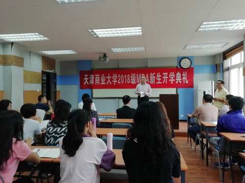 李耘涛作为教师代表讲话,希望新生摆正心态,坚持努力,并鼓励学生与老师多交流,理论与实践相结合,不断获得提升。2017级MBA学生代表马丽洁、2018级MBA新生代表薛士静分别作了发言。