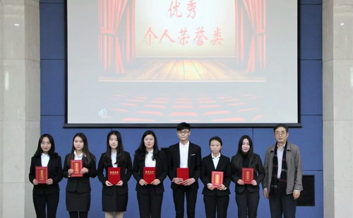 会上,张娟宣读《2017-2018学年度优秀学生、先进集体表彰大会表彰决定》,对尹世强等561名优秀学生及日语1701班等11个先进集体给予表彰。英语1506班尹世强作为优秀学生代表分享了自己的成长感悟和学习体会。最后,颁奖嘉宾向受表彰的优秀个人和先进集体颁发了荣誉证书和奖状。