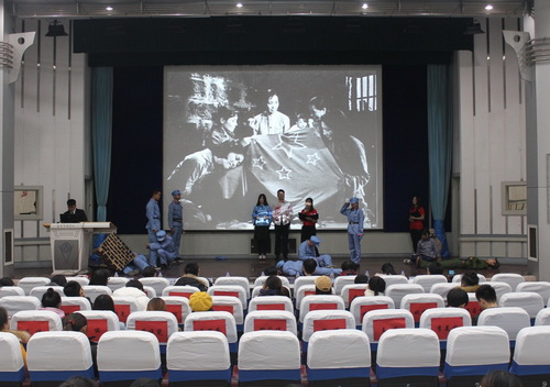 感动教育分为爱国篇、亲情篇和励志篇三个部分。爱国篇以改革开放四十周年为主题,用视频和朗诵的方式展现了我国在各个方面的华丽转变。参军复员同学讲述的军旅生活和情景剧《致敬历史》,让我们深深地感受到军人的伟大,激发同学们的爱国情怀。亲情篇以“骨肉至亲”为主题突出血脉相连、不可磨灭的亲情,以视频和身边同学的故事赞美出亲情的无私,母爱的伟大。并通过游戏环节唤起同学们心灵最深处的感动过渡到励志篇,从不同角度告诉大家,现在美好生活来之不易,唯有奋斗才能不负青春年华。