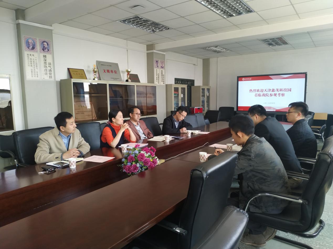 4月10日,鑫茂科技园管理委员会副主任边学书、鑫茂科技投资集团孵化中心副主任邢建明一行到理学院考察交流,在1号教学楼806室就校企合作、产学结合等事宜进行座谈。学院教学副院长安建业、科研副院长周严、党委副书记杨璐伊、统计系主任徐立参加。