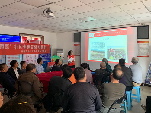 为贯彻落实总书记纪念五四运动100周年大会的重要讲话精神,以实际行动继承和发扬五四精神,践行时代使命,5月8日,马克思主义学院“丹赤燎原”理论宣讲团赴北辰区佳荣里街道佳欣里社区开展“弘扬五四精神树立坚定信仰谱写人生华章”主题理论宣讲。