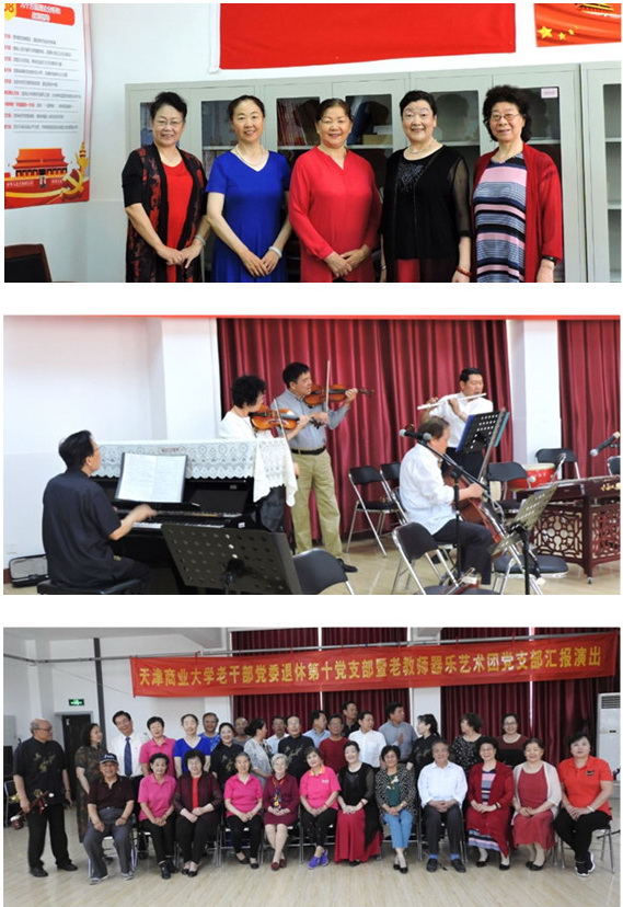 为庆祝新中国成立70周年,弘扬爱国主义精神,凝聚发展正能量,5月31日上午,老干部党委第十党支部“老教师器乐艺术团”功能型党支部在南院老干部活动中心举行了主题为“不忘初心七十载银发生辉新时代——让音乐走进老年生活”文艺演出活动。文艺节目包括民乐、管弦乐、古筝、萨克斯演奏以及诗歌朗诵、舞蹈、男生独唱、女生小合唱等,为学校老教师们奉献了一场艺术盛宴。