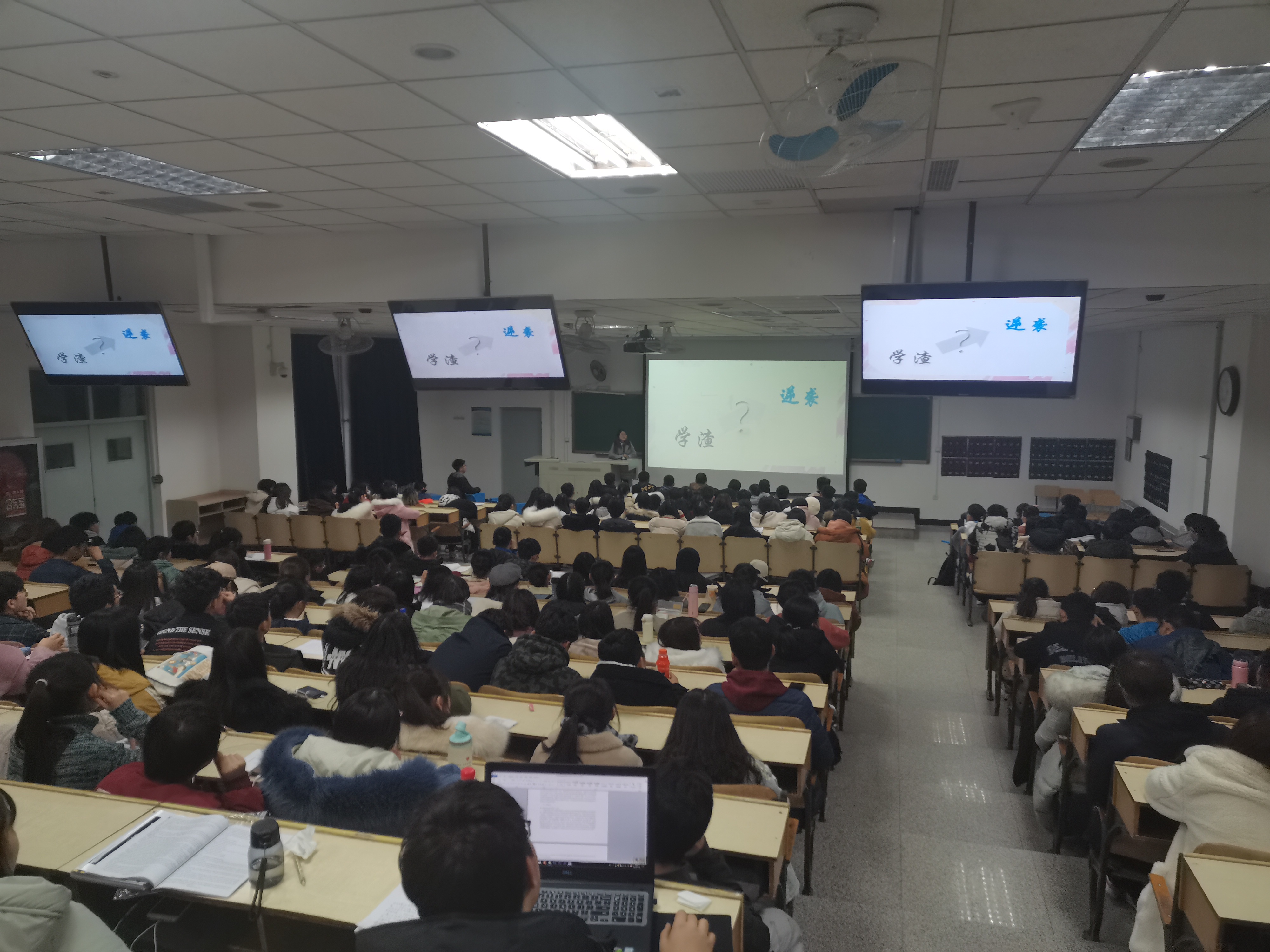 焦盼用幽默风趣语言,戏剧性地讲述了自己从“学渣”逆袭“学霸”的经历。“只要奋斗,就有出路”,她与同学们热情地互动,用丰富的例子向同学们全方位的展示了“勤于学习”、“热爱科研”、“勇于实践”的自己,鼓励同学们要潜心专注于专业课学习,大胆尝试含金量高的比赛。同时,她还告诫同学们要学会取舍,用有限的精力博取最大的成绩。