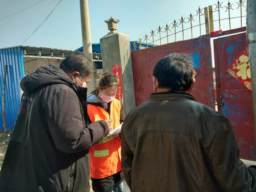 “您好,请问家里人身体状况都好么,有从外地回家过年的么,最近有外出情况么?”本科生第二党支部党员孟雅第一时间就报名加入商丘市睢县长岗镇北郭庄村的疫情防控小组,从来往人员车辆排查、村民体温测量,到挨家挨户的入户登记走访、宣传人群聚集的危害,孟雅都要和村民“细细讲、慢慢聊”,竭尽所能、无微不至。村里临时口罩不够,她还拿出家中仅有的备用口罩,分发给村里没有口罩的留守老人和孩子。在她心里,疫情防控,没有谁是“局外人”,没有事是“份外事”,抗击疫情,需要你我同行,只要我们万众一心,终有一天,必将战胜疫情。