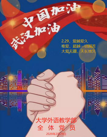 为进一步激励教学部广大党员投身抗疫战、继续做好宣传员和战斗员,大学外语教学部党总支和支部策划了“齐心抗击疫情、突击队员抢先行”主题党日活动。2月28日以腾讯会议平台为依托展开了党日活动,全体党员参加活动。