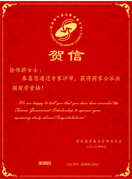 近日,国家留学基金委公布2020年国家公派高级研究学者、访问学者、博士后项目录取结果,理学院教师徐伟骄博士申请的国家公派访问学者项目获得全额资助。