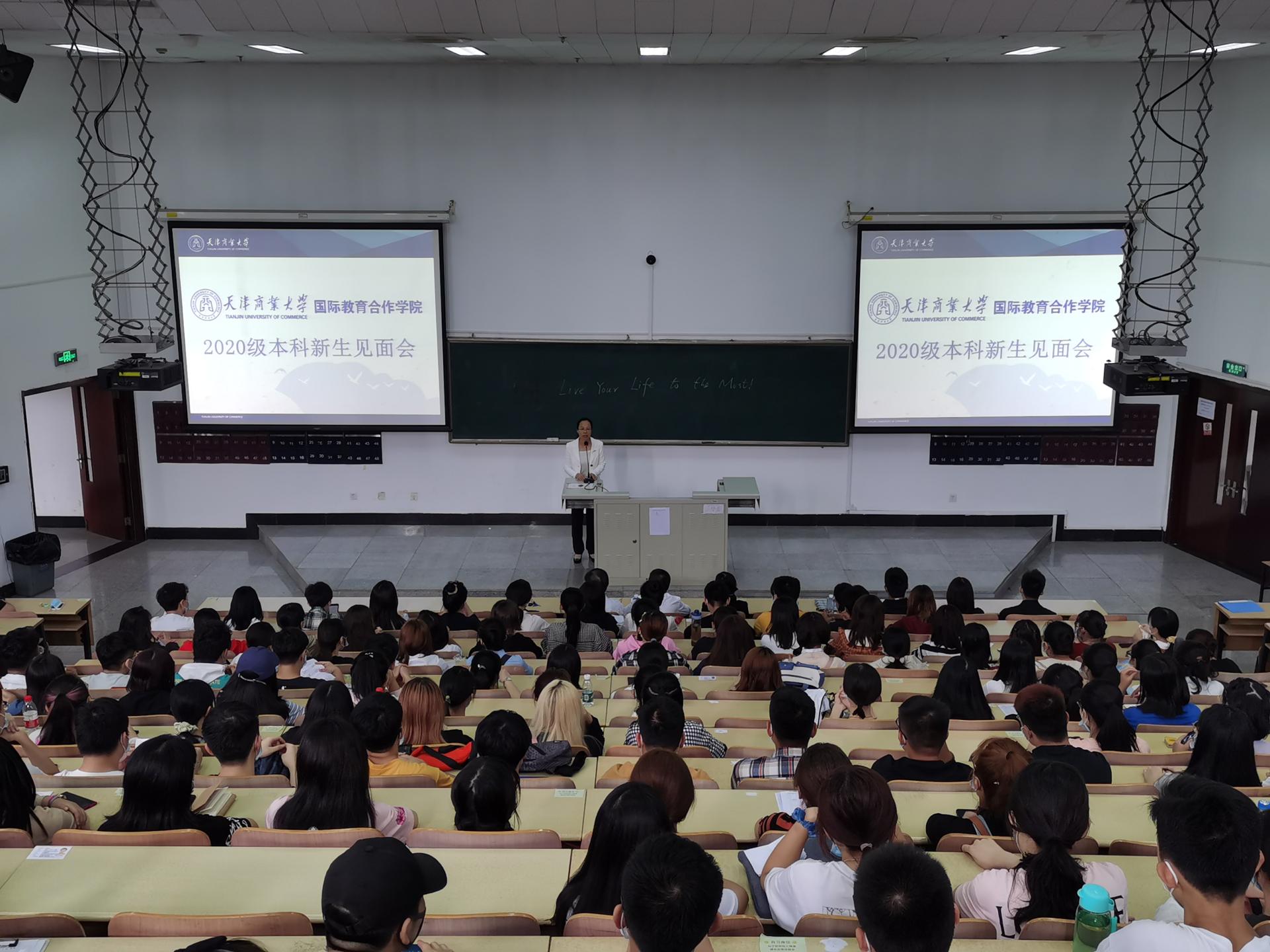 9月25日上午,国际教育合作学院分专业在国际教育交流中心E303召开了2020级本科新生见面会。学院党委书记杨震,党委副书记、院长乔秀梅,党委副书记、纪委书记王舒婷,副院长刘会洪、陶伟、曹晓丽,全体教学秘书、辅导员、部分专业课教师代表及全体2020级本科新生参加了见面会。