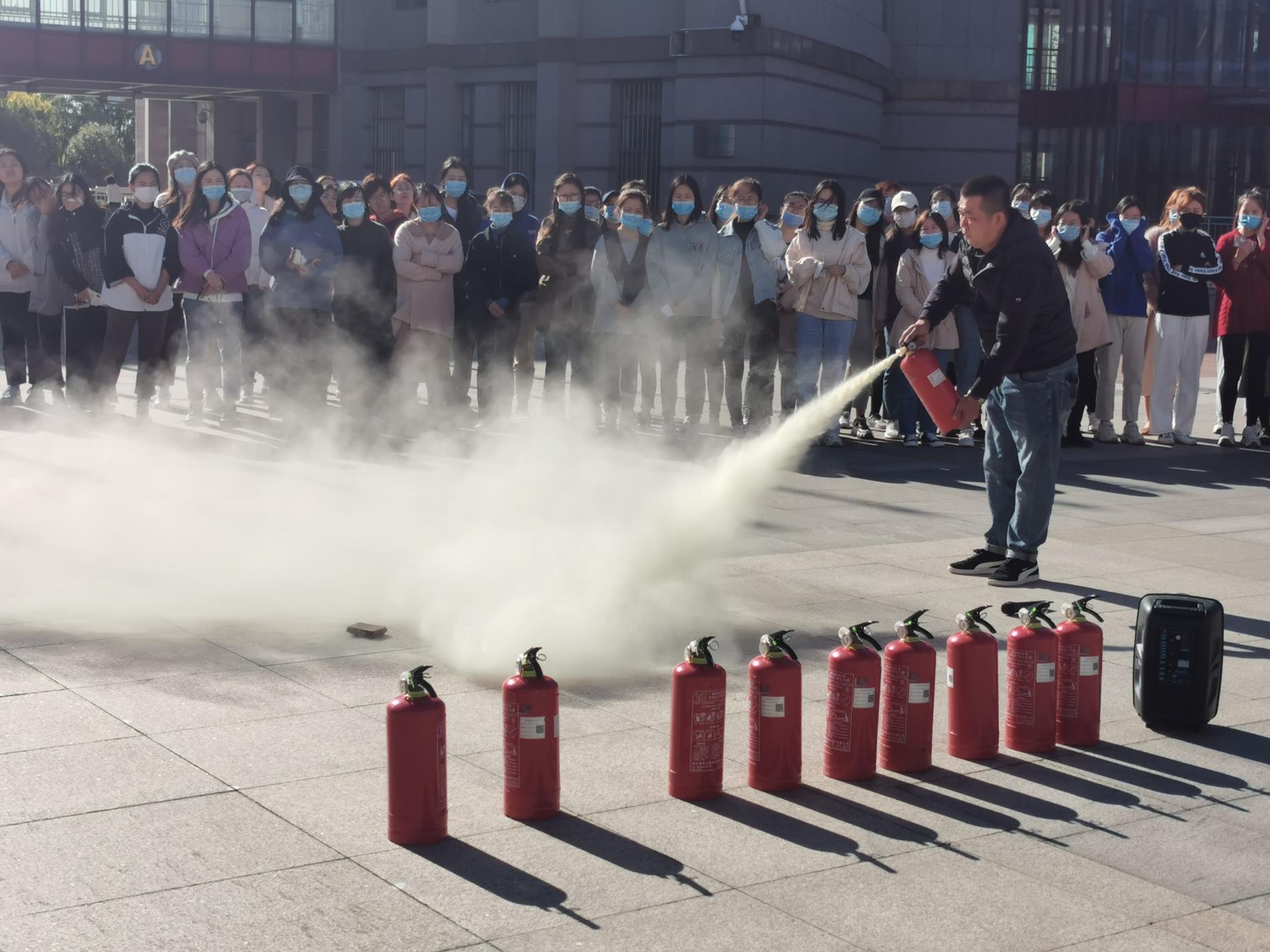 演练后,学生处副处长翟云锋现场对消防疏散演练进行了总结,并要求学生们时刻绷紧安全神精之弦,相互监督,平时预防为主,相互帮助,疏散时不漏一人。保卫处安排了专业人员讲授了疏散逃生技巧和灭火器的种类及使用方法,并进行了演示。公寓区物业一线服务人员、部分辅导员及学生代表分别进行了灭火器的实操演练。