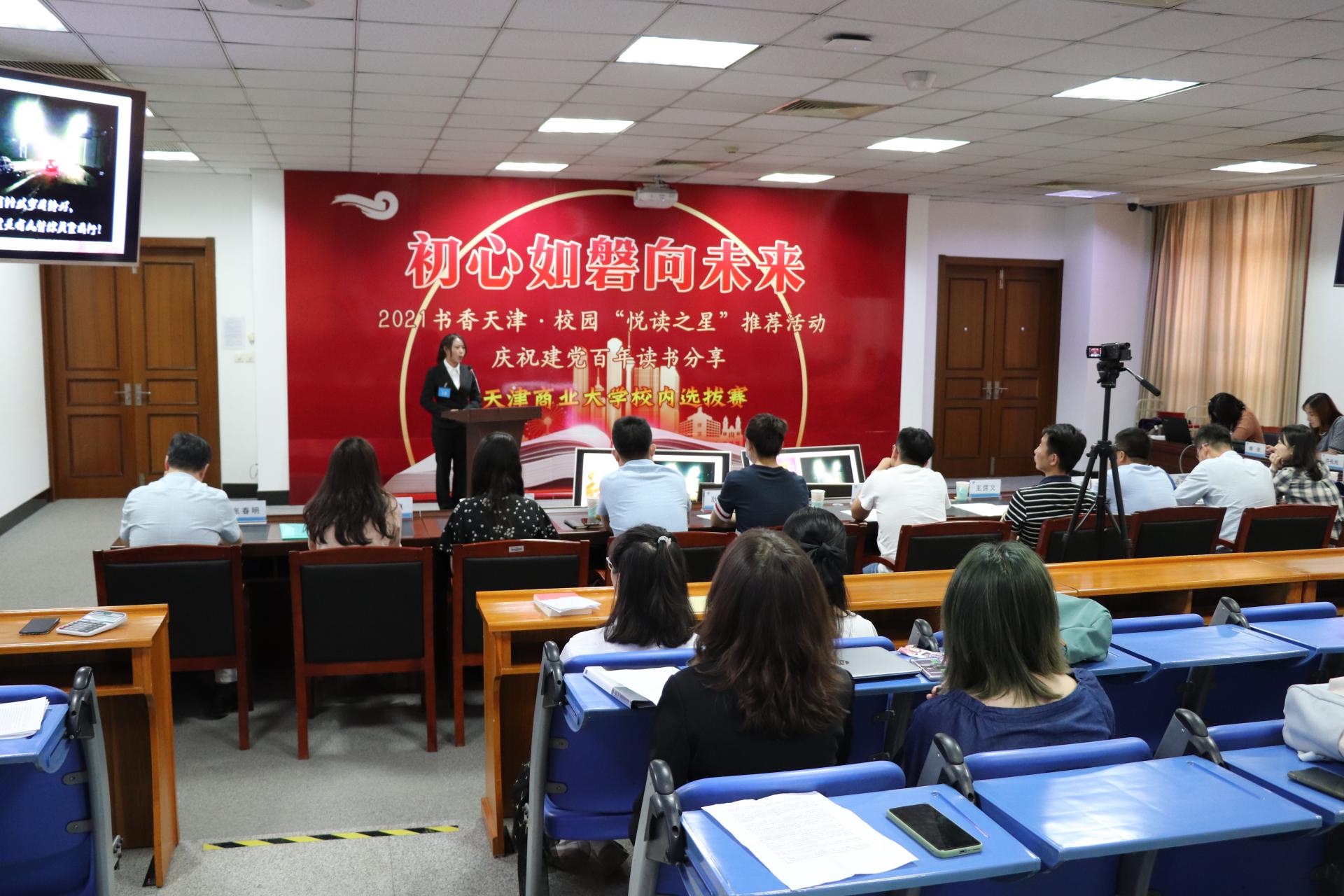 6月4日中午,由图书馆、学工部、教务处、团委多部门联合举办的“2021书香天津·悦读之星校内选拔赛”在图书馆弘毅厅举办。