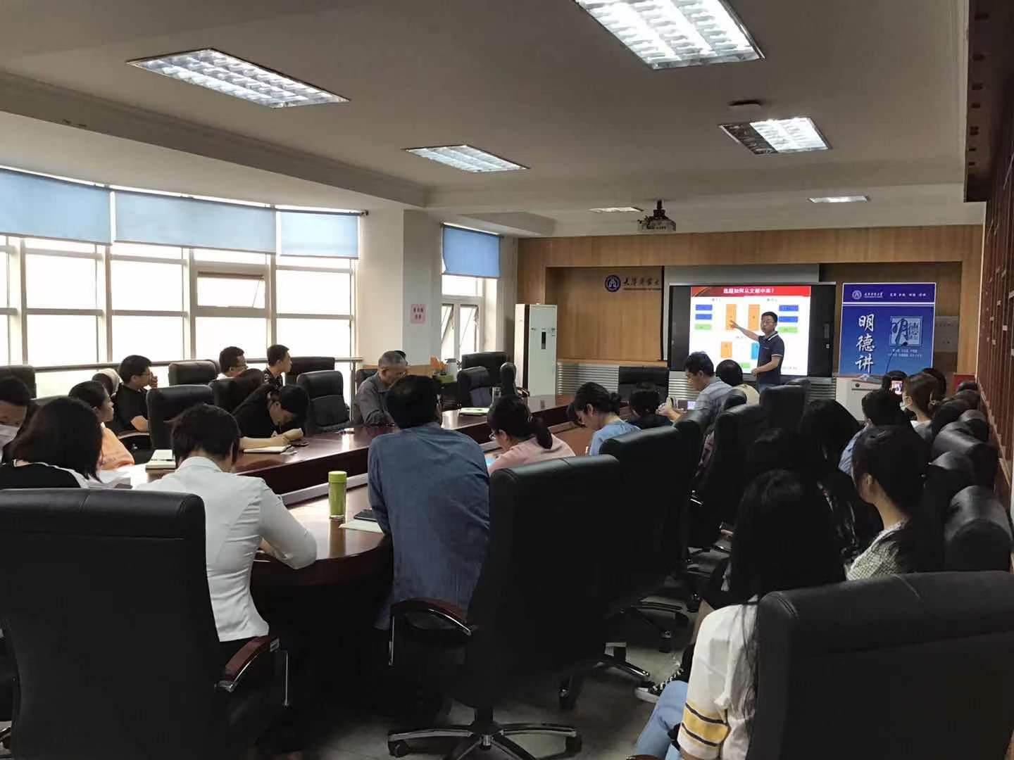 交流会上,韩海彬作了题为《关于学术研究的几点体会》的报告。围绕着“如何认识学术研究”“如何看待论文发表”“如何撰写高质量论文”三个方面,向各位老师和学生们介绍了自己在学术研究过程中使用的定量分析方法,分析现阶段期刊论文的发展水平、普遍要求和向外文期刊投稿的过程等内容。
