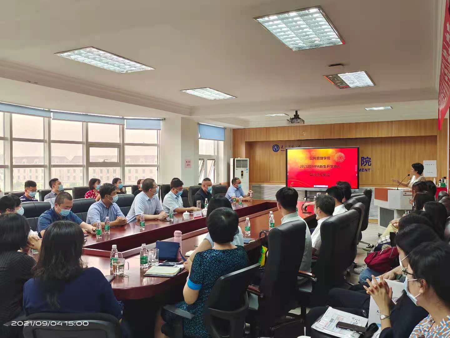 9月4日下午,学校首届公共管理硕士(MPA)新生开学典礼在公共管理学院512会议室召开。校研究生处处长陈雷、公共管理学院领导班子成员、MPA教育中心全体工作人员、硕士生导师及2021级全体MPA新生出席典礼。开学典礼由学院副院长、MPA教育中心主任王雪丽主持。