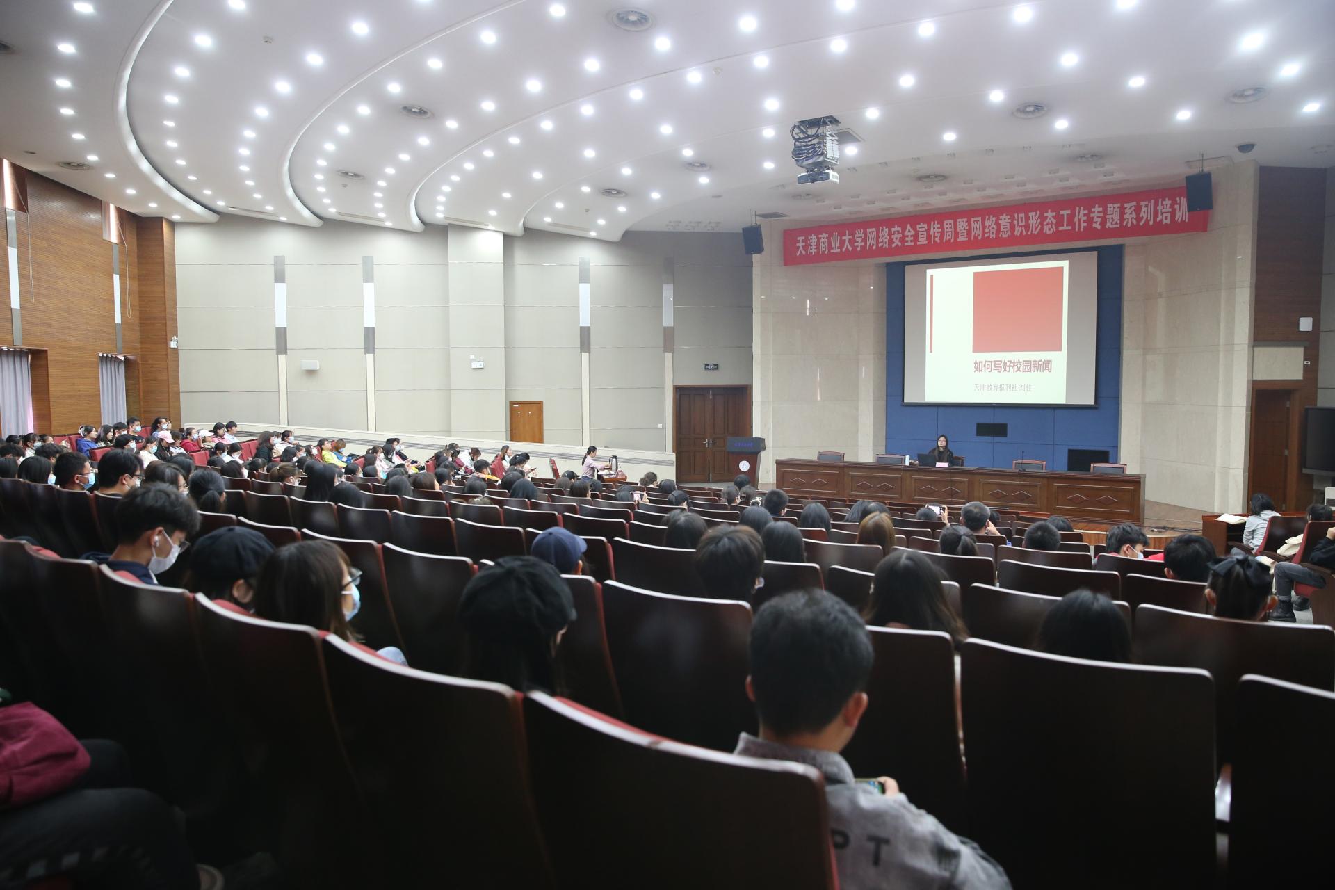 为进一步提高学校新闻宣传工作的科学化和规范化水平,10月13日,党委宣传部特邀天津教育报刊社文字记者刘佳、摄影记者刘东岳在图书馆三楼国际报告厅开展校园新闻写作与摄影培训。各学院、各部门的新闻信息员和新媒体工作人员,以及学生媒体记者近250人参加。
