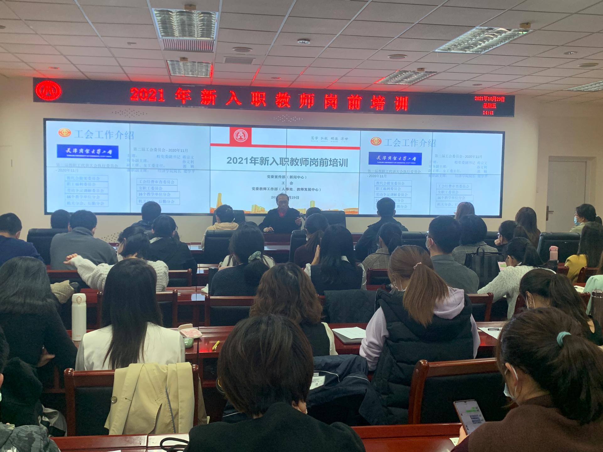 为帮助新入职教师尽快完成角色转变,加快融入学校发展,提升教书育人的责任感和使命感,10月29日下午,教师发展中心在4号楼404举办首场2021年新入职教师岗前培训。工会常务副主席孙文利、党委宣传部副部长郭卫中和人事处副处长柴蕾分别就工会工作、意识形态、师资政策做详细解读。各学院新入职教师参加。