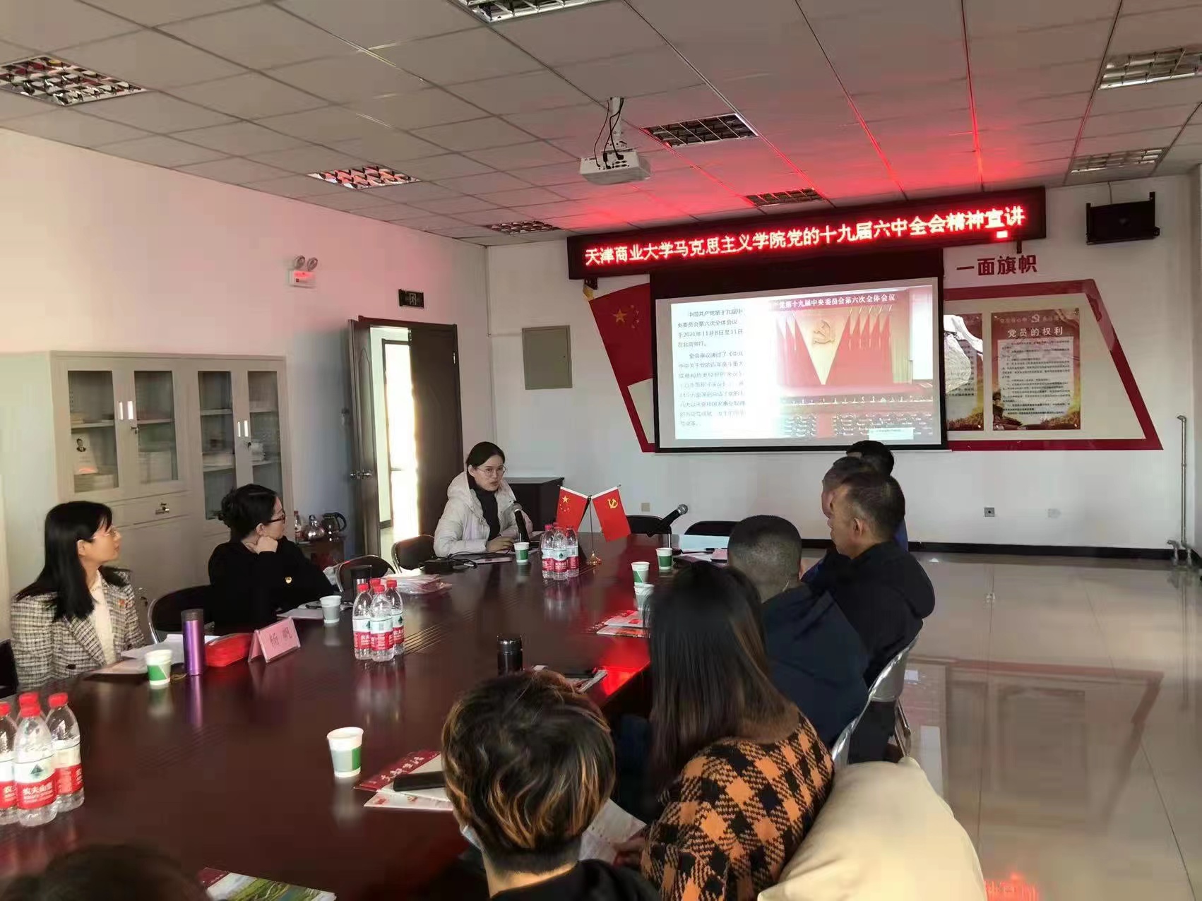 12月30日,马克思主义学院思政党支部在支部书记李欣带领下,来到刘房子村党支部,为40多名党员群众宣讲十九届六中全会精神,将党的创新理论送到街村巷口。刘房子村党委副书记、第二党支部书记、第三党支部书记、村委会办公室主任、瑞辰物业总经理参加了此次活动。