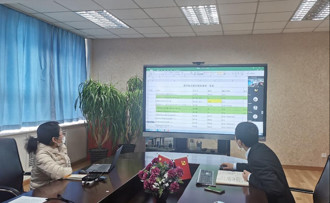 周严梳理了学院实验室管理过程中存在的教学及日常管理问题,提出三项工作重点。第一,本着实用、适用的原则,积极修订实验室制度。根据理学院实验室实际需求,以清单形式明确责任人、适用范围、完成时间等事项,督促各实验室完成18项制度修订,规范实验室管理。第二,基于教学、管理实际需求,建立线上实验室安全宣传资源。适应学生对线上教学资源的偏好,学院以项目为抓手录制实验室安全教育系列短视频,在每节课前对学生进行安全教育,筑牢实验室安全防线。第三,以评促建,做好新一轮学院实验室自评、整改工作。根据学校本科审核评估会议精神,各实验室做好实验室硬件设备、环境隐患排查、报备及整改工作。随后,各实验中心主任和管理人员围绕制度内容、实验室开放细则、新专业实验需求、安全隐患等问题进行汇报、交流。