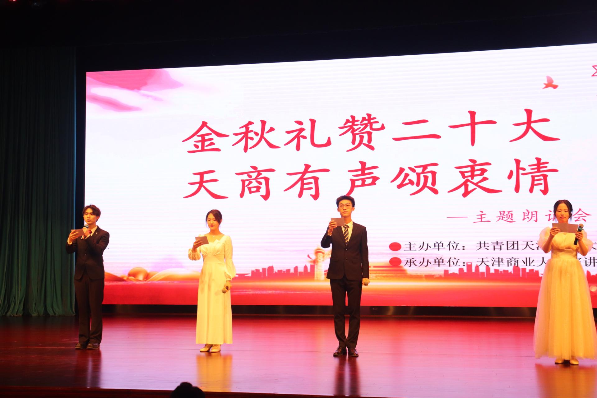 10月26日晚,由校团委主办、天商演讲社承办的“金秋礼赞二十大 天商有声颂衷情”主题朗诵会在科学会堂举行。本次活动旨在深入学习宣传贯彻党的二十大精神,以声传情、以颂明志,充分展现天商师生良好的精神风貌。